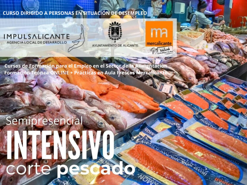 Inicio parte práctica CORTE PESCADO, en Aula de Frescos de Mercalicante: 16 al 20 octubre 2023. Carretera de Madrid Km. 4, 03114.