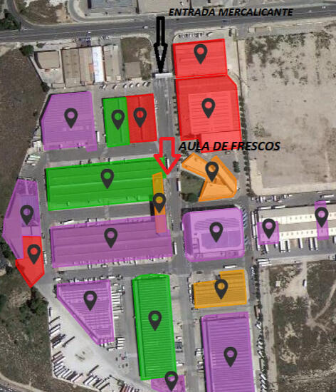 Para acceder con vehículo propio, en las barreras de la entrada a Mercalicante, os situareis en la barrera de la izquierda, que es para los vehiculos sin autorización, indicareis que vais al curso de corte de pescado y os abriran la barrera.